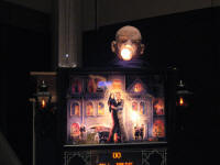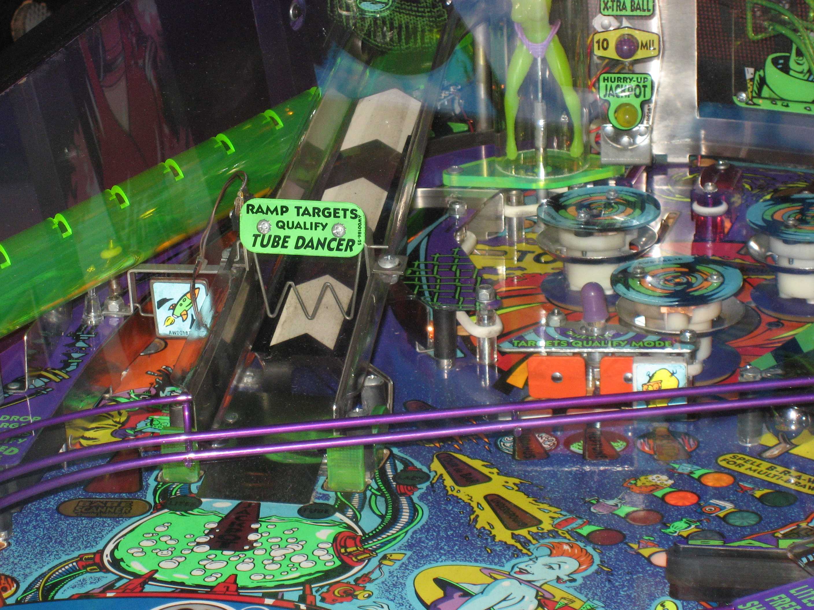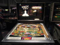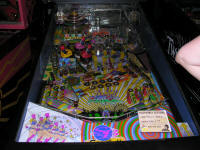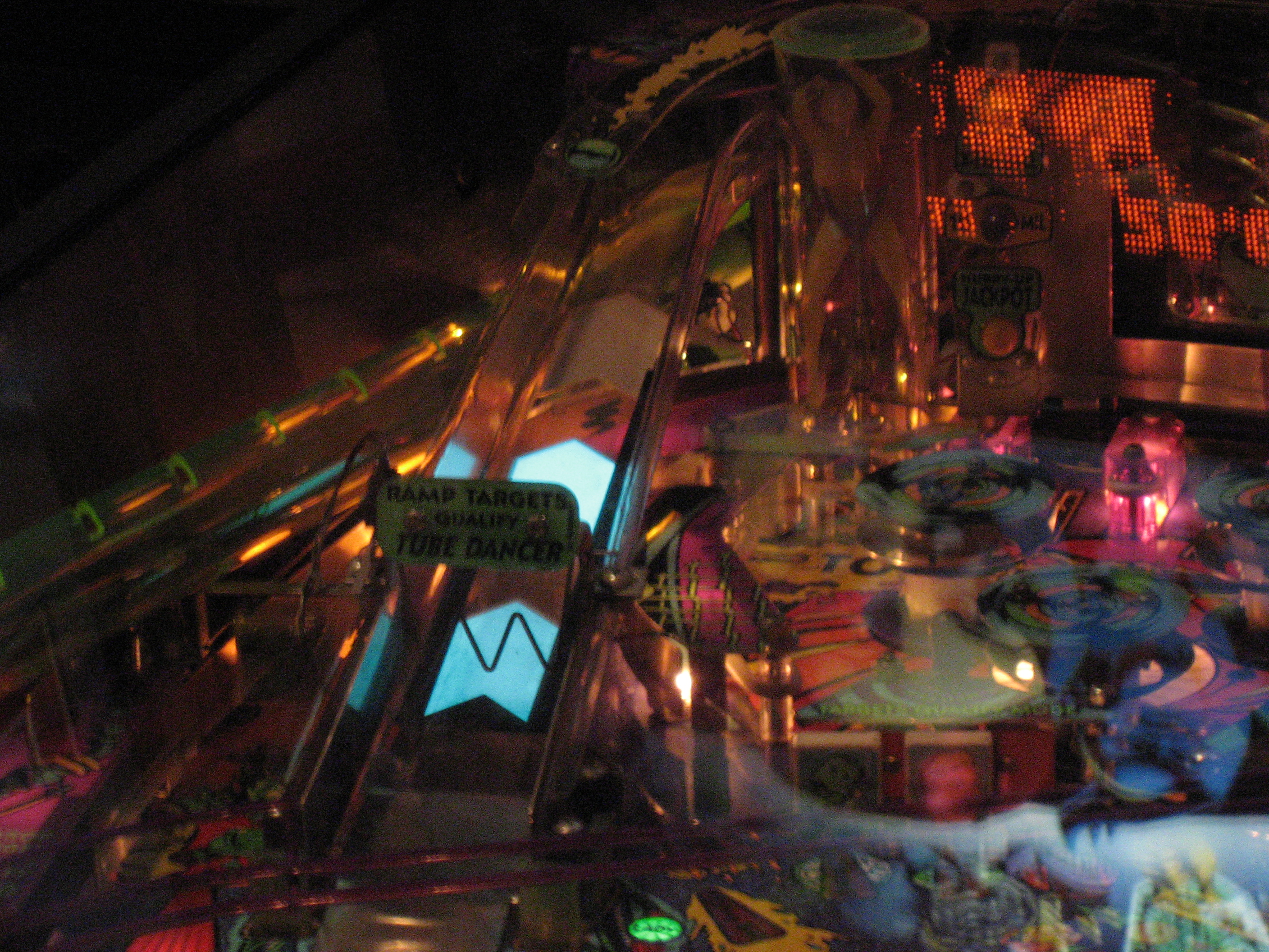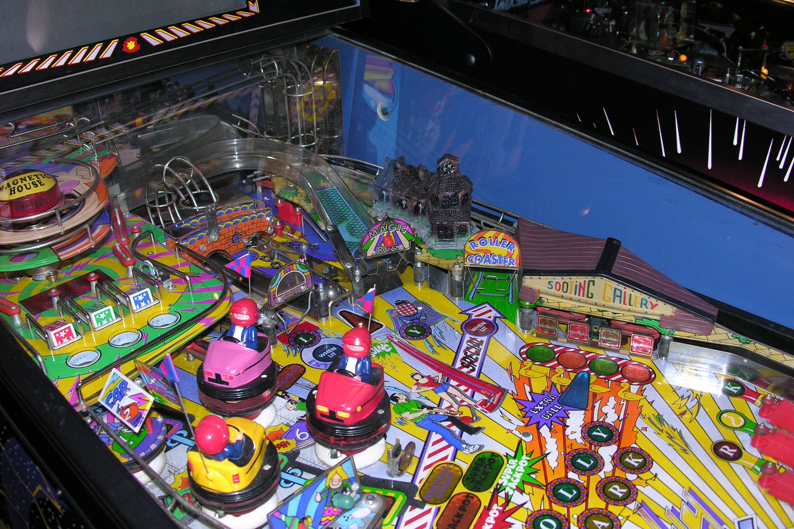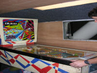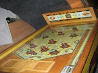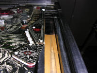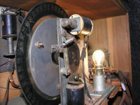 This mechanism has teh scores on a wheel that rotates for each recorded bumper hit. The light projects the score onto the screen. |
