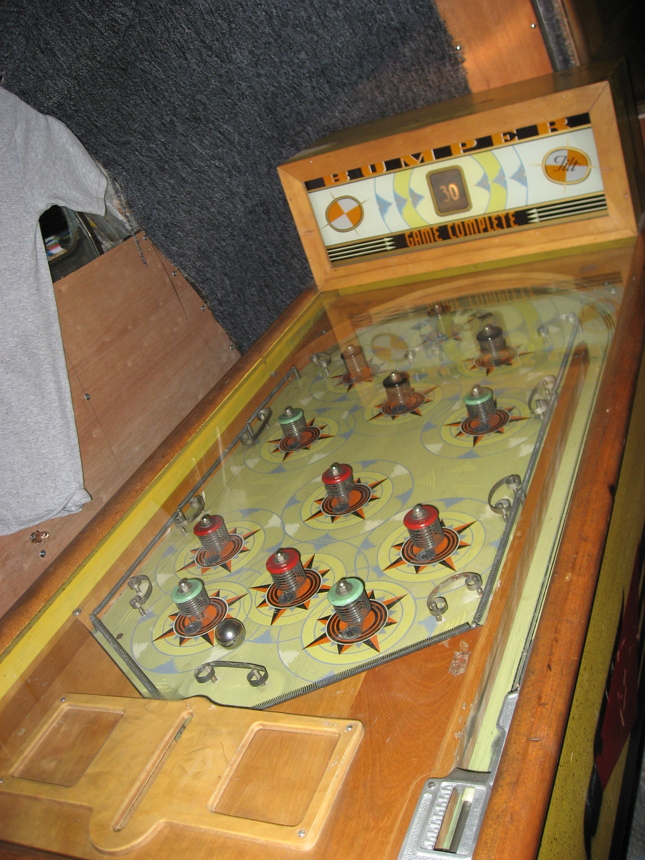 This machine has wire spring bumpers. When the ball moves the spring, it completes a circuit that bumps the scoring wheel.