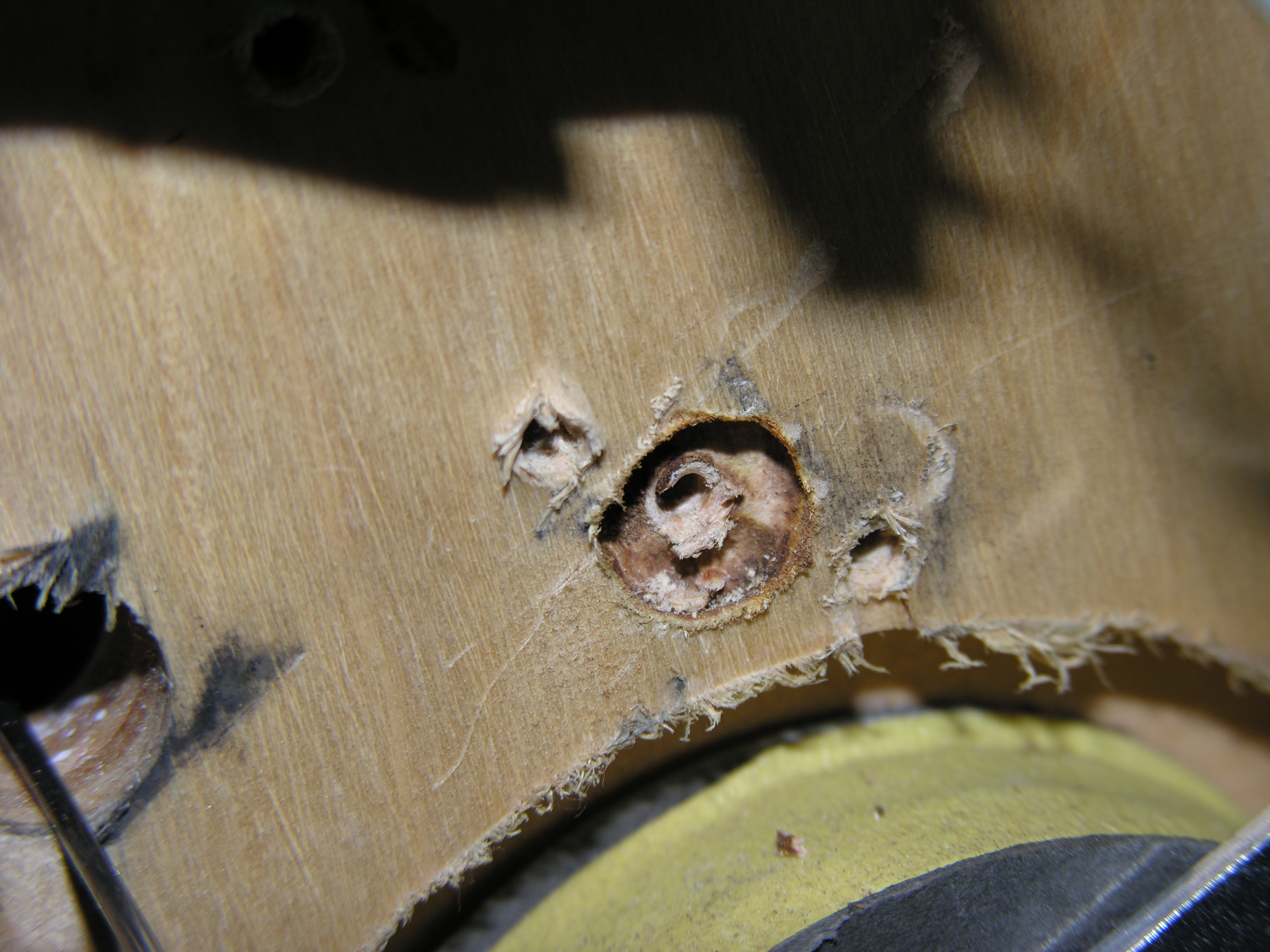 voids. The bamboo serves as a guide for the screw hole, and provides