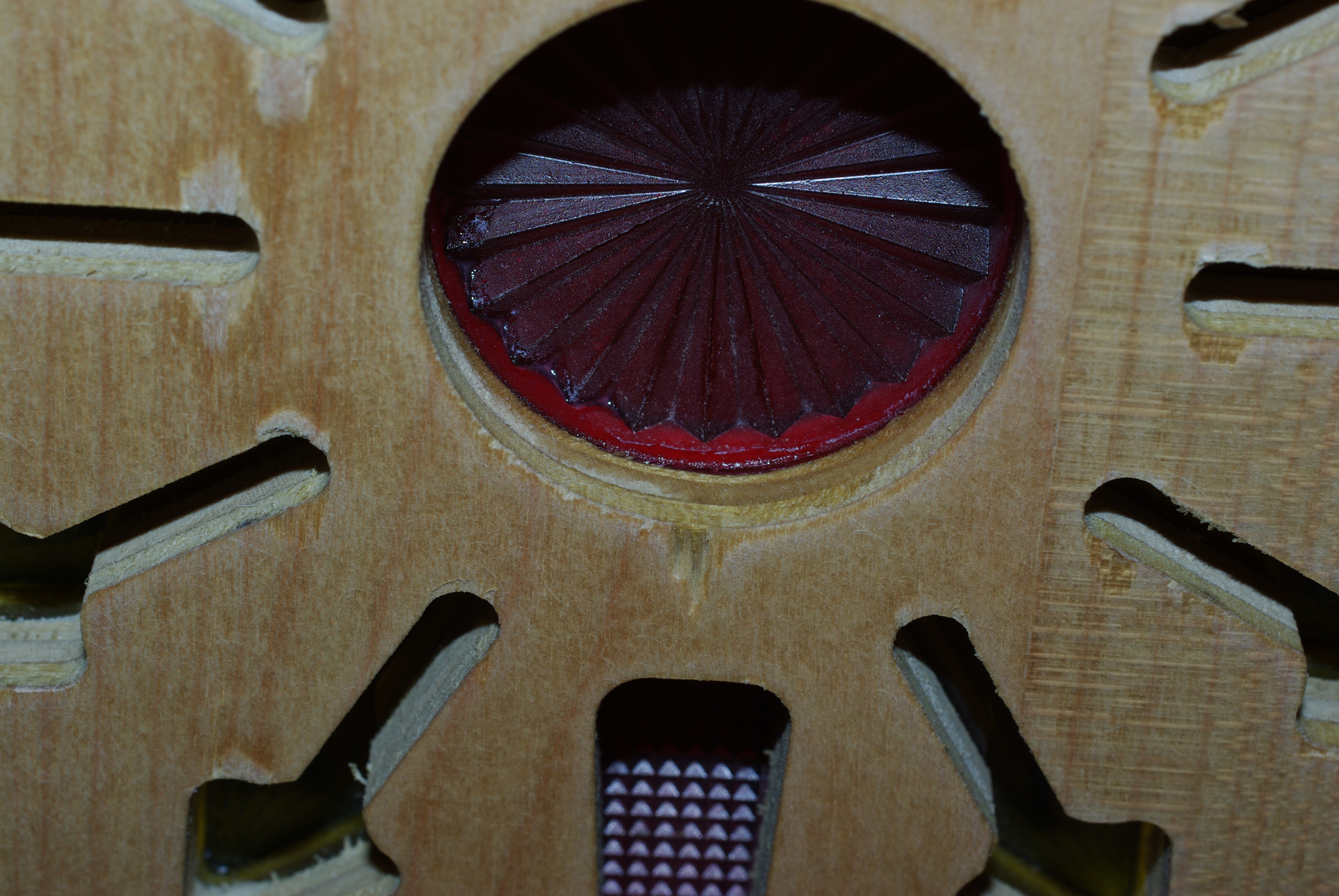 AfM playfields, old and new, seem to be susceptible to cracking around the inserts. The cracking happens around large and small inserts, so it is a general problem. My working hypothesis is that the AfM CAD file made the holes a few thousandths too large, leaving a gap that the clearcoat did not penetrate. This gap results in cracking over time.