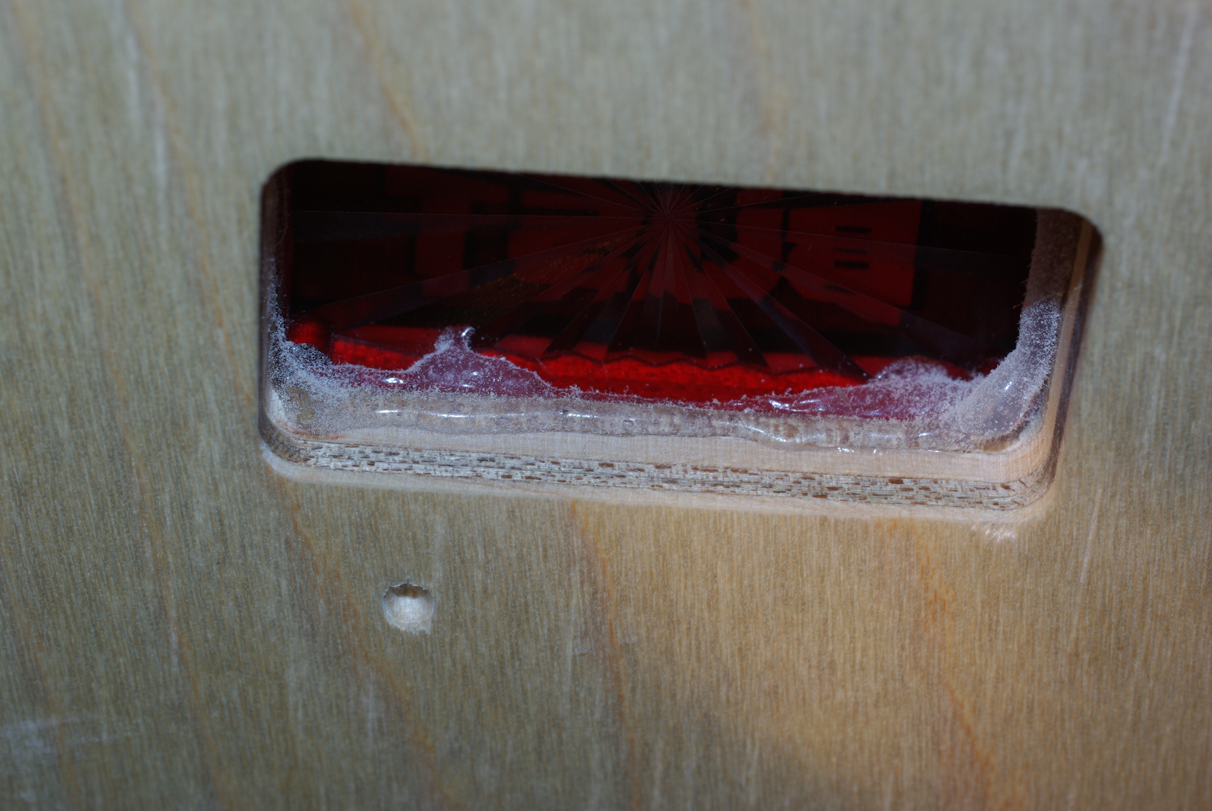 If the clearcoat did not flow into the gap between the wood and the insert, it may crack across the gap.