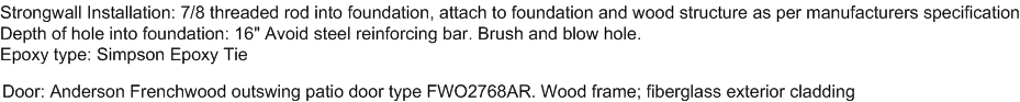 To get this approved, you need a calculation - a structural engineer's approval that it is strong enough. And a special inspector to make sure that the epoxy holding the strongwall bolts down is poured correctly and the threaded rod properly inserted.