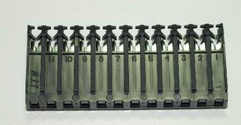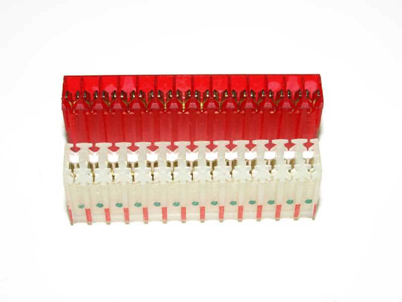 We have a good supply of red stripe 13-pin Panduit connectors on Pinbits. These connectors can be cut down to suit any red stripe (22GA) needs, most specifically the 11-pin GI headers on WPC machines.