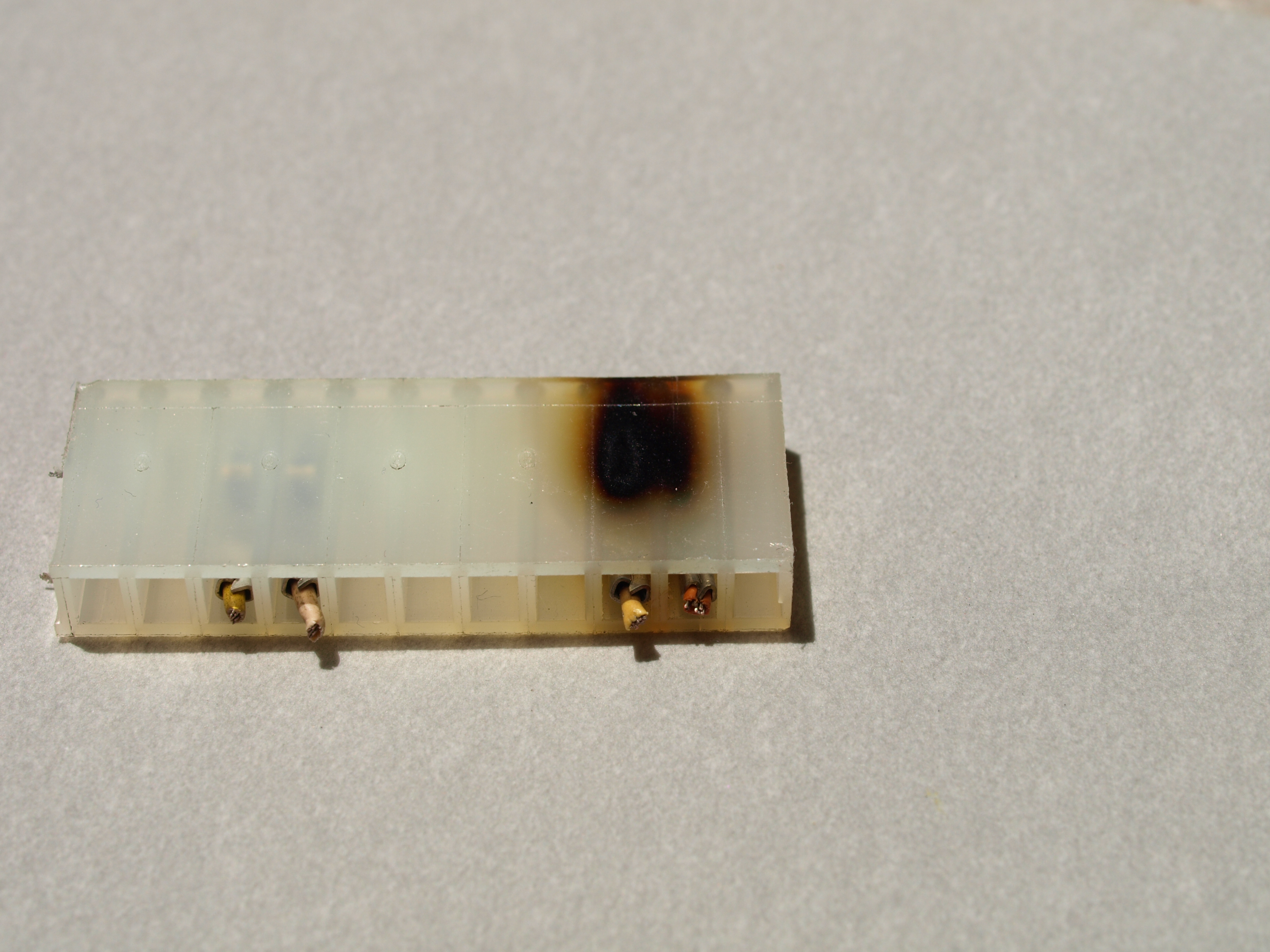 The result is a discolored connector, a damaged pin and socket, and - most